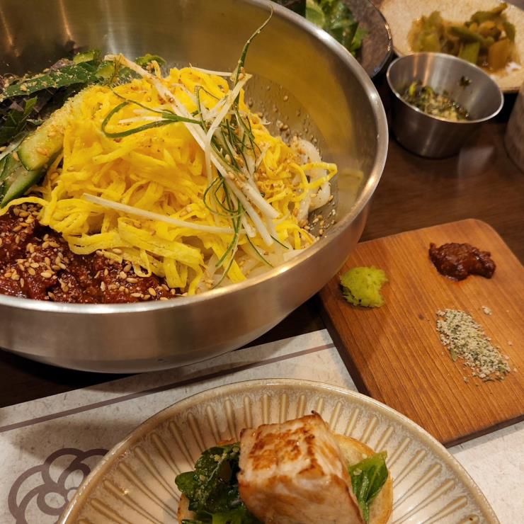 후식으로 비빔국수도 곁들여진 고소한 한상세트가 함께 나오니 깔끔하게 나와서 먹기 좋다.