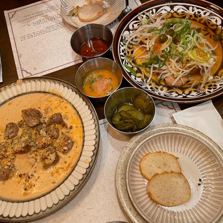 토마토와 치즈크림, 베샤멜과 크림스테이크 등 양식집 못지않은 밑반찬도 있으니 꼭 드셔보세요.