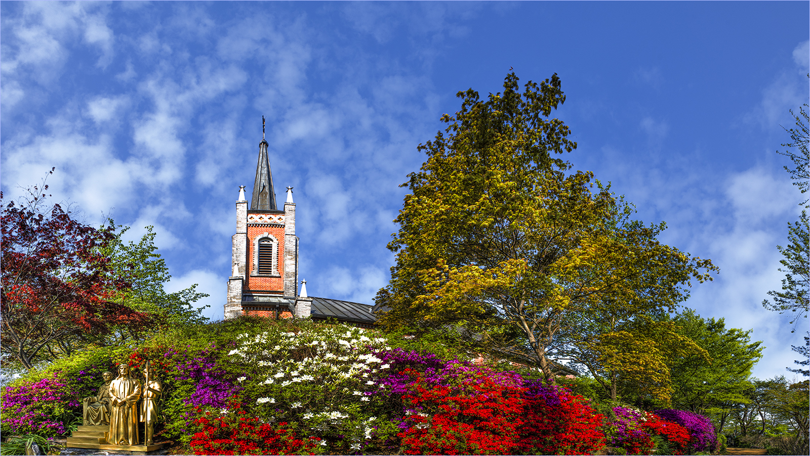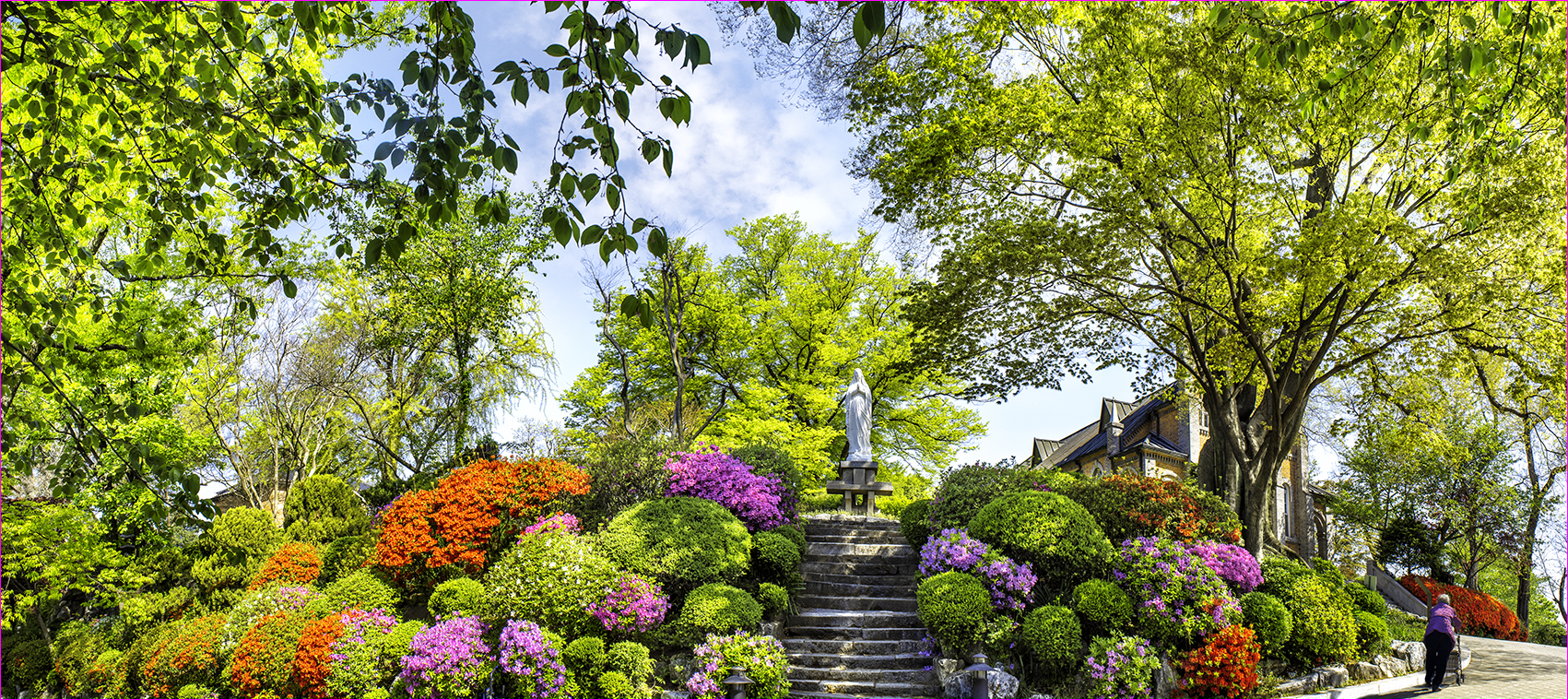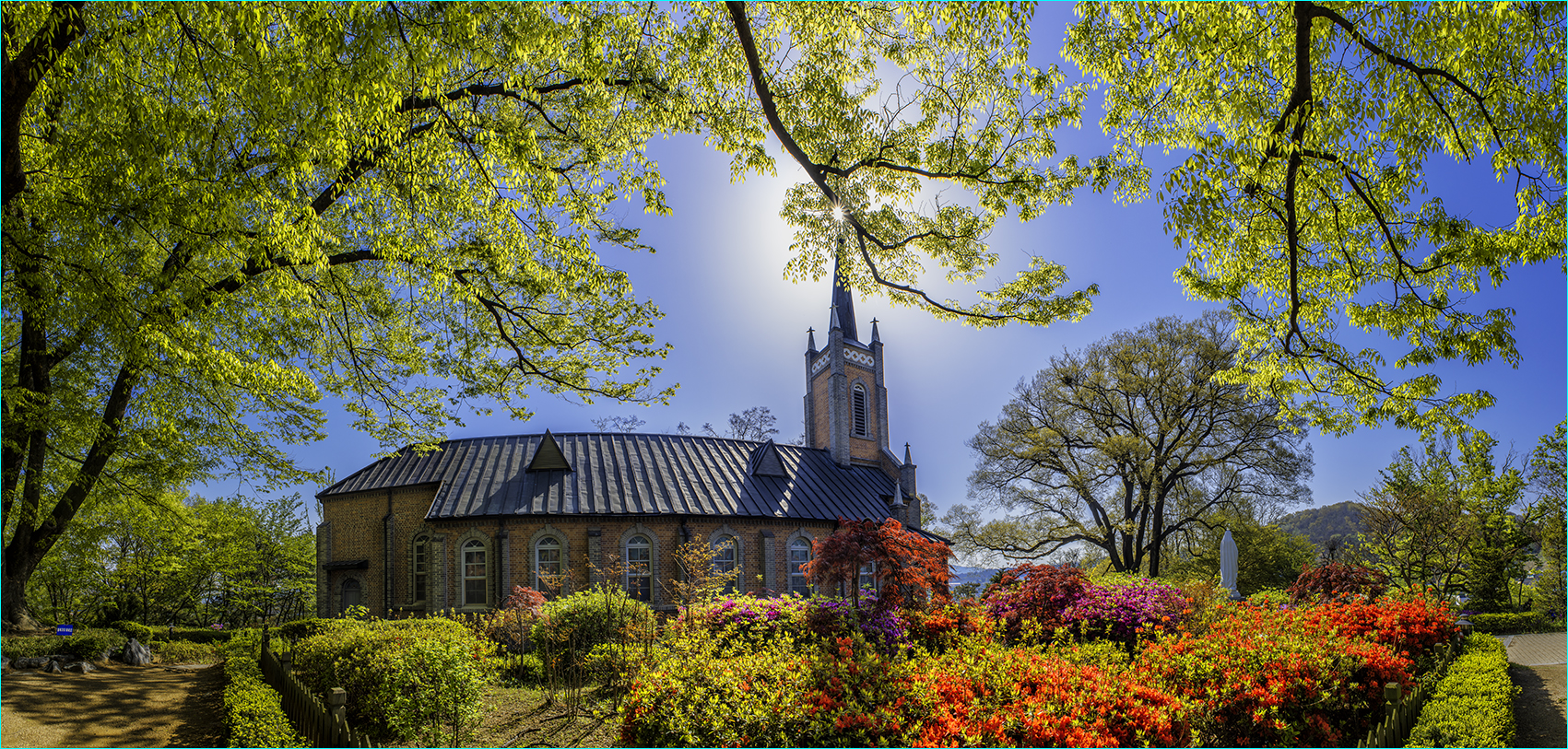 교회에 들어오면 바로 보입니다. 350다년생 팽나무가 방문객들의 눈길을 끈다. 해가 지면 나무 그림자가 끝없이 늘어납니다.. 그 옆에 서 있는 느티나무는 수령이 거의 4400년에 이릅니다.. 세 곡조선시대 성곽 옆에 심은 느티나무는 하역 노동자들의 쉼터로 세월의 흐름을 보여준다.(폭풍)견디고 지금은 조용히 대성당을 지키고 있습니다..