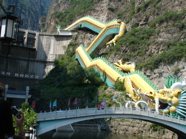 용경협은 협곡의 이름이 용을 닮았다고 하여 붙여진 이름이다. 위키백과에 따르면 장쩌민 주석은 1973년 이곳을 방문해 계곡에 댐을 짓고 인공호수를 만들고 유람선을 띄우라는 특별 지시를 내렸다. 위 사진의 댐은 당시 특주로 건설된 댐이다. 용의 계단을 올라가면 넓은 선착장이 있고 그곳에는 많은 배들이 정박해 있다. 배는 그리 크지 않고 15-20명 정도가 타고 있었던 것 같습니다.