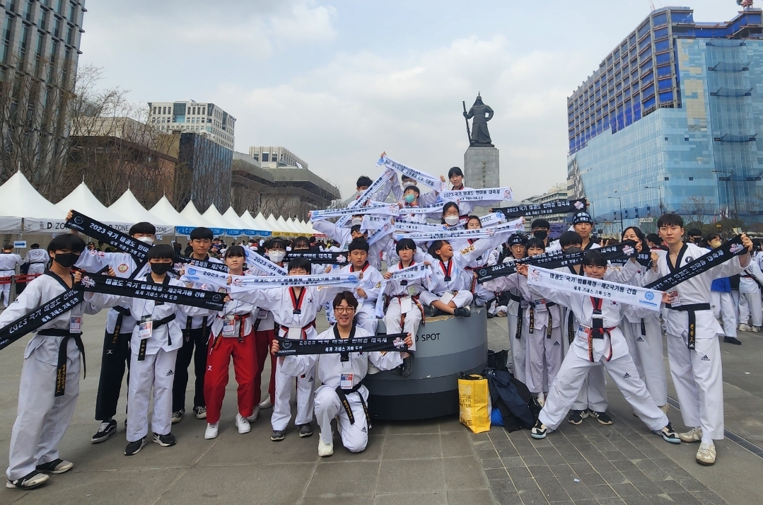 25일 오후 서울 광화문광장에서 열린 ‘전국태권도한마음축제’에 전국 태권도 수련생 1만2000여명이 참석했다.