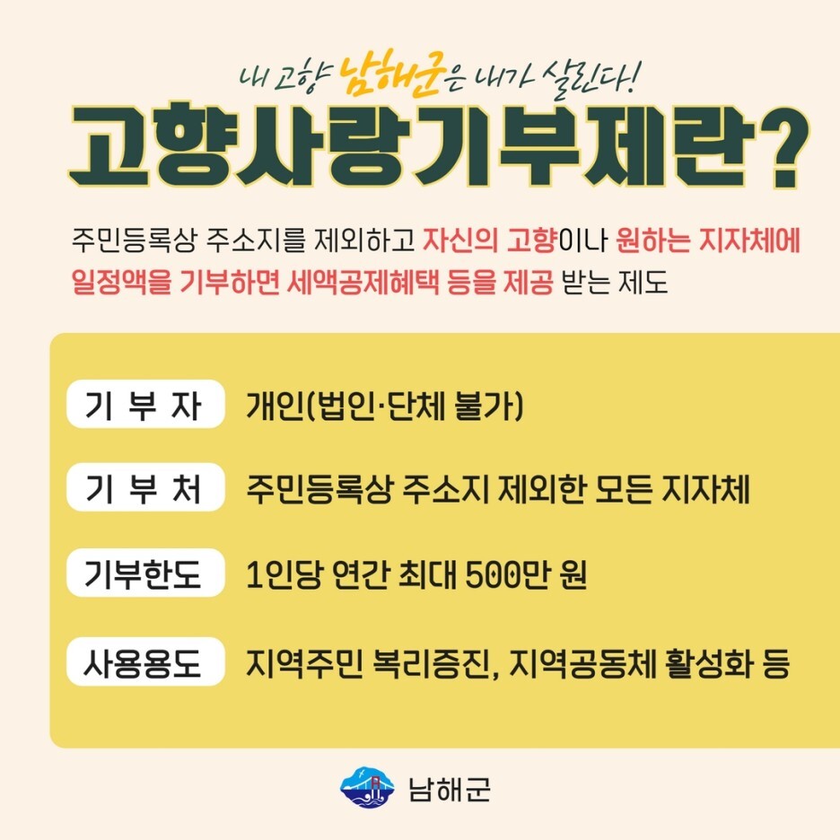 오늘은 남해의 고향사랑 기부 소식을 전하고자 글을 올립니다.