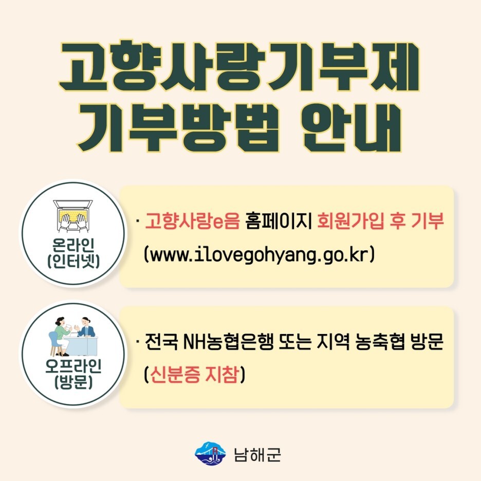 오늘은 남해의 고향사랑 기부 소식을 전하고자 글을 올립니다.