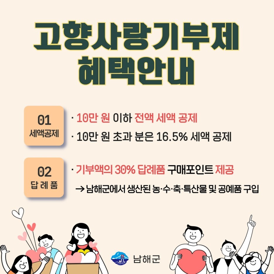 현재 남해군에서는 고향사랑기부제도 활성화를 위해 많은 노력을 기울이고 있습니다 😀
