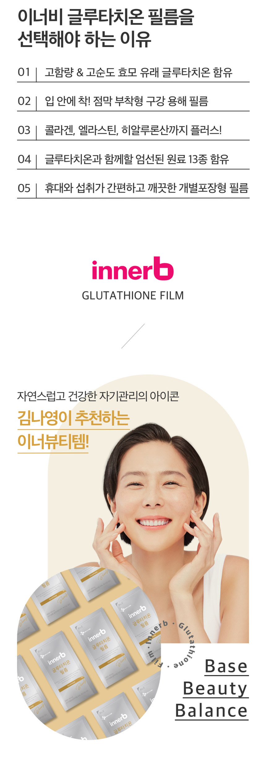 예전에는 피부가 하얗다고 했는데 나이가 들면서 피부색이 어두워지고 기미와 기미도 생기더라고요. 조금 부족해서 이너뷰티로 케어하기 시작했어요. 해냈어! 글루타치온은 백우주사의 성분으로도 알려져 있고 도움이 된다고 해서 글루타치온 보충제를 연구하게 되었습니다. 건강 셀프케어 아이콘 김나영이 선택한 이너뷰티 아이템이기도 하죠!